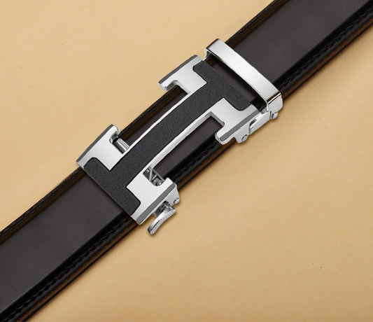 Leather Ratchet Belt with Alloy Automatic Buckle – Inspired by Hermès